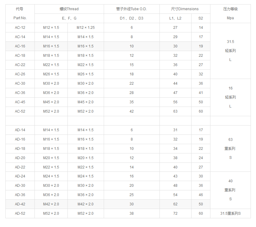 10411公制外螺紋24°內(nèi)錐輕系列